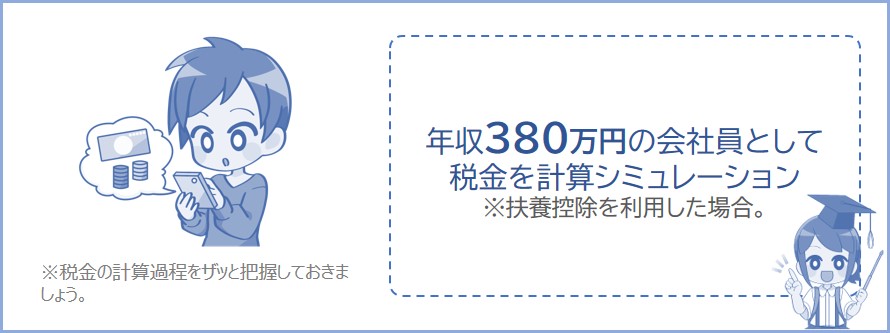 では次に、扶養控除を利用したときの所得税の計算過程について下記で説明していきます。年収400万くらいの会社員としてシミュレーションしていきます。