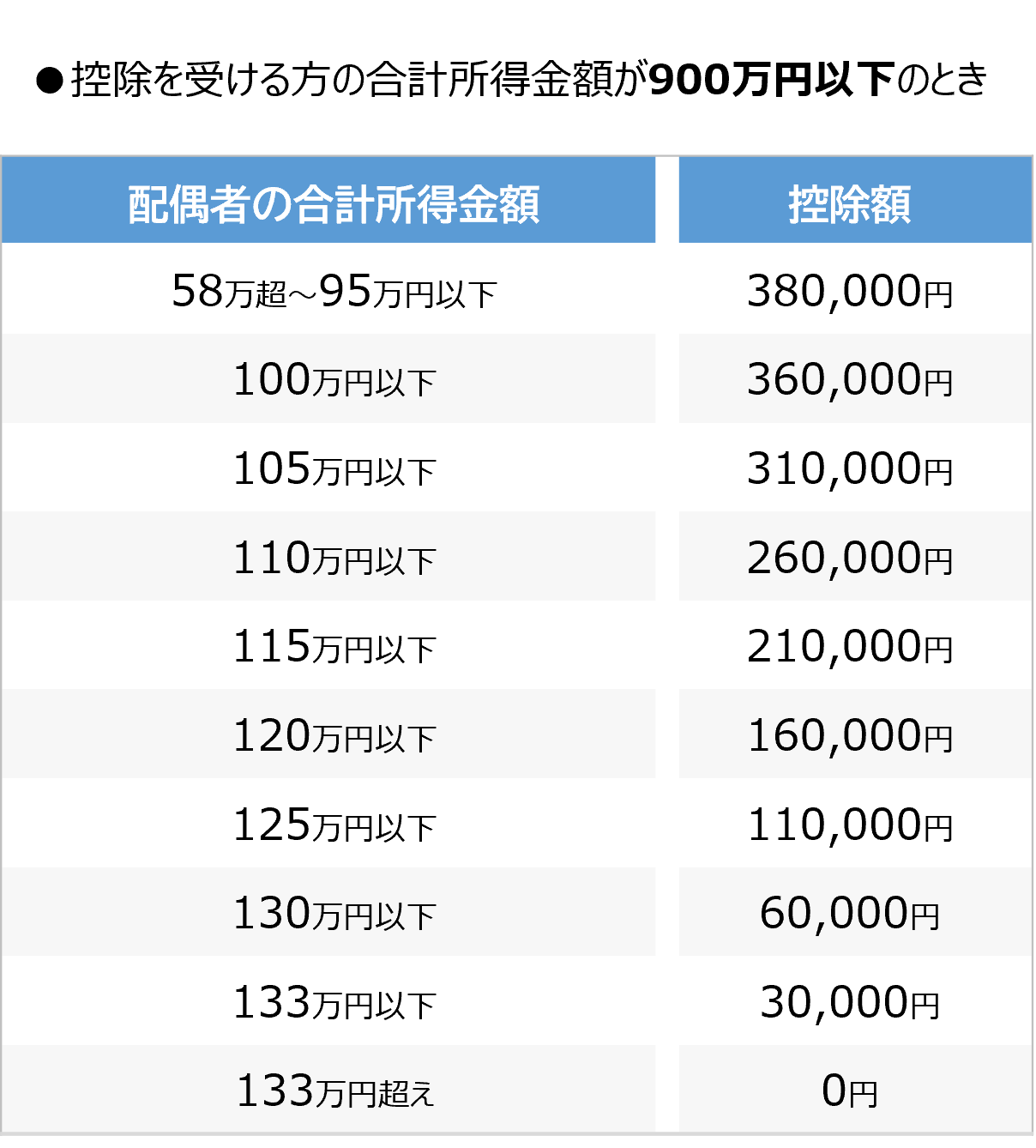 ※配偶者の合計所得が133万円を超えると控除の対象外になるため。