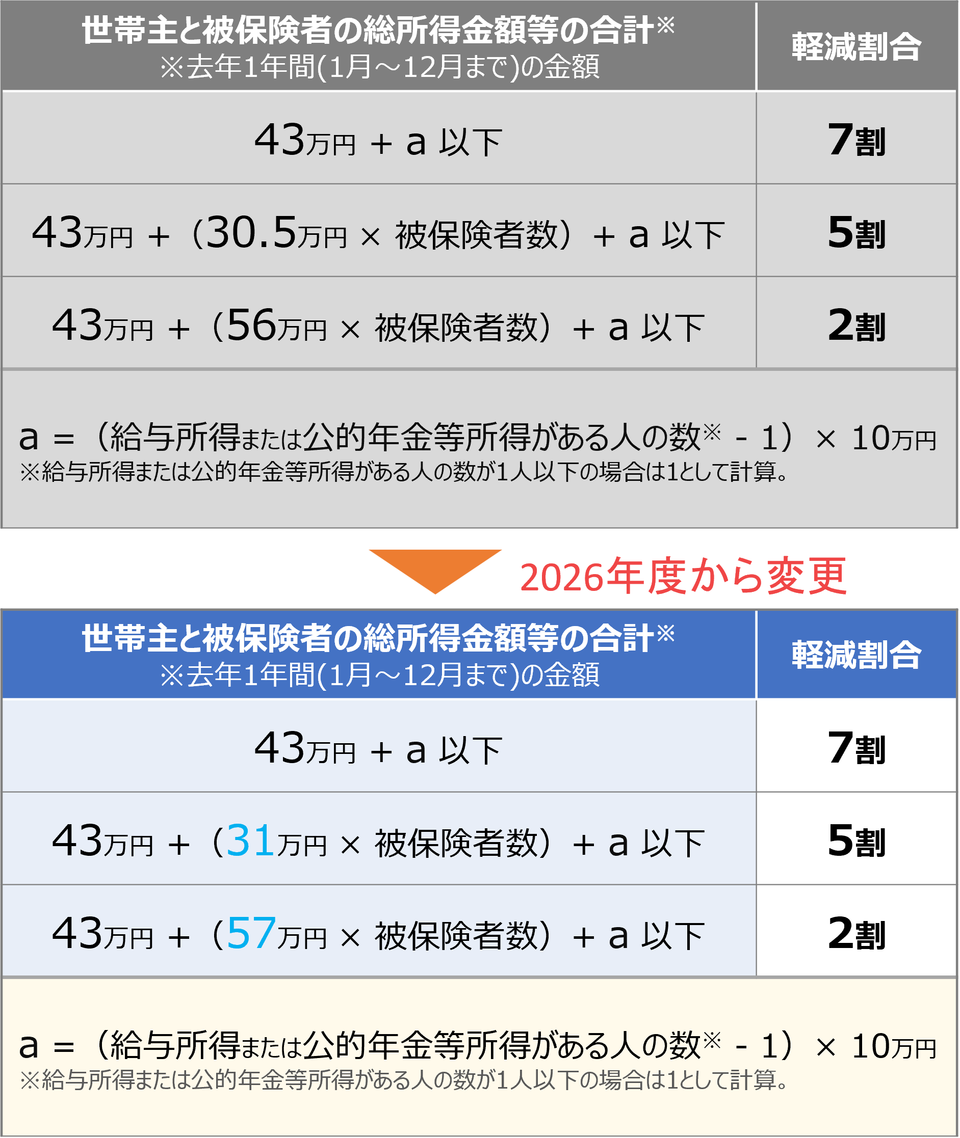 2026年度から国民健康保険料および後期高齢者の減額条件が変わります
